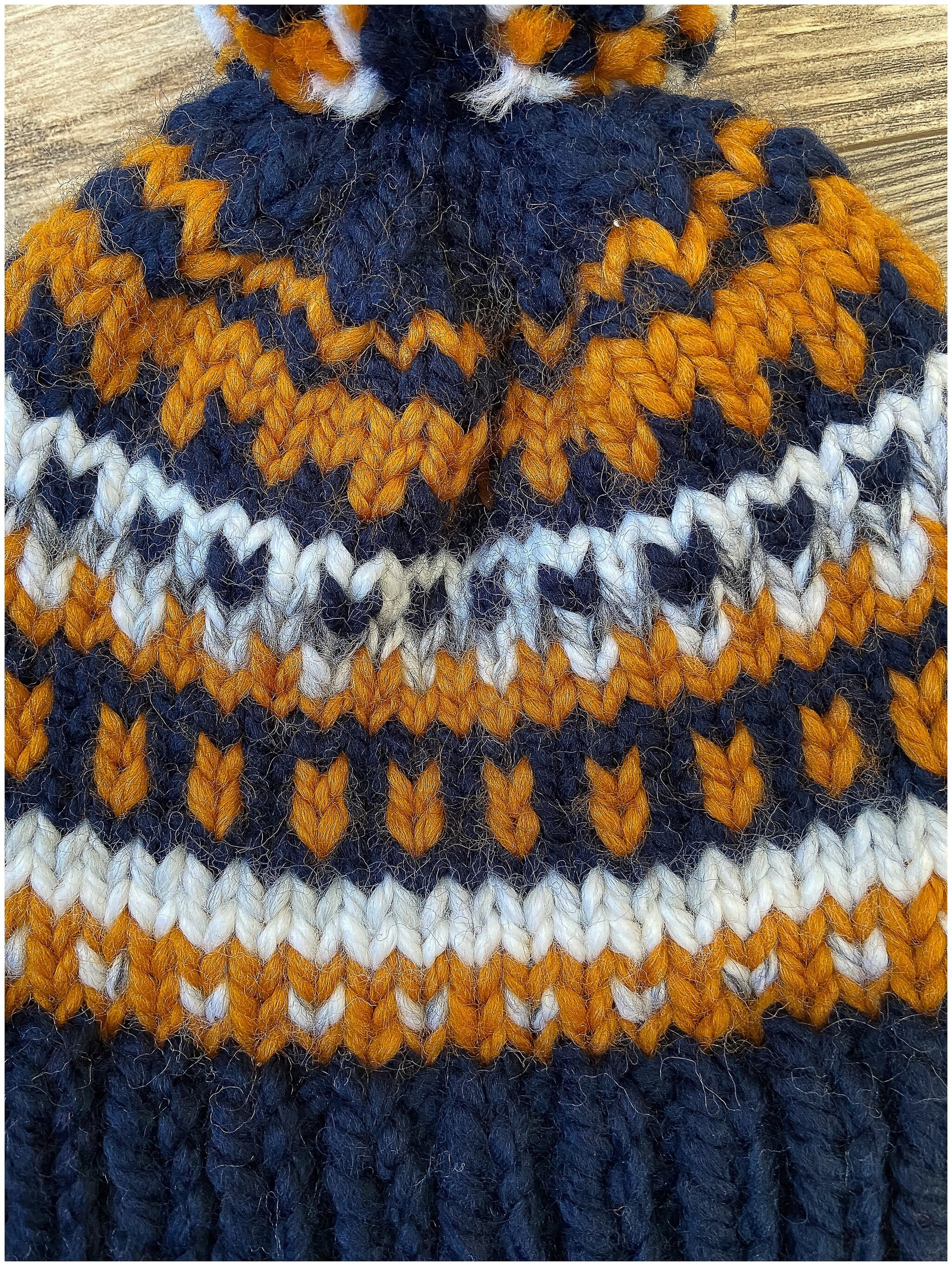 Color: Navy & gold, marbles white patterned yarn used as an accent color