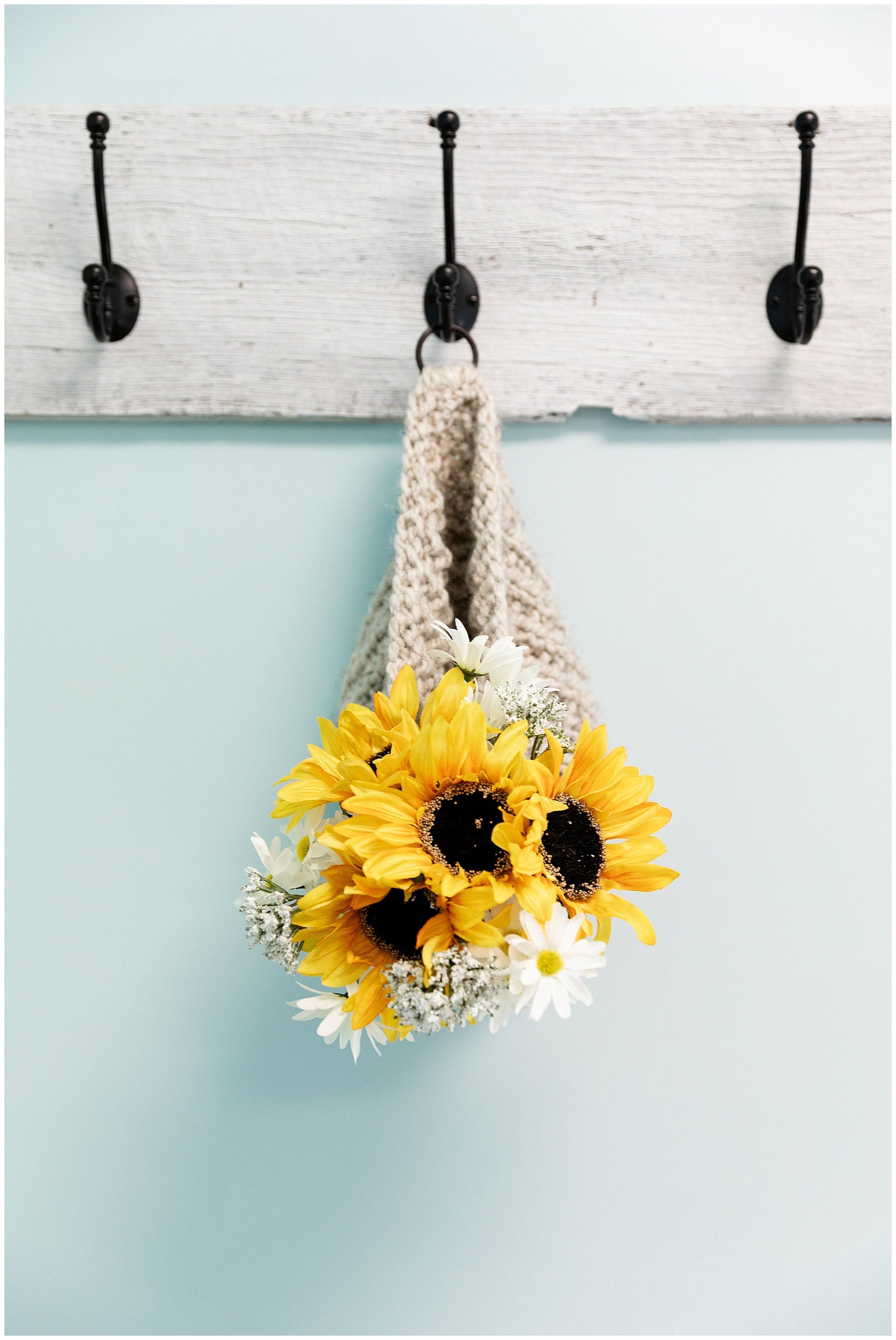 This delightful hanging wall basket is the perfect addition to any room in your home. Put it in the entryway to stash mail, fido's leash or other items you need as you head out the door. In the nursery store those tiny little newborn diapers or adorable outfits. Or simply use them as part of your home décor. I just love the sunflowers brightening up the room from their basket!