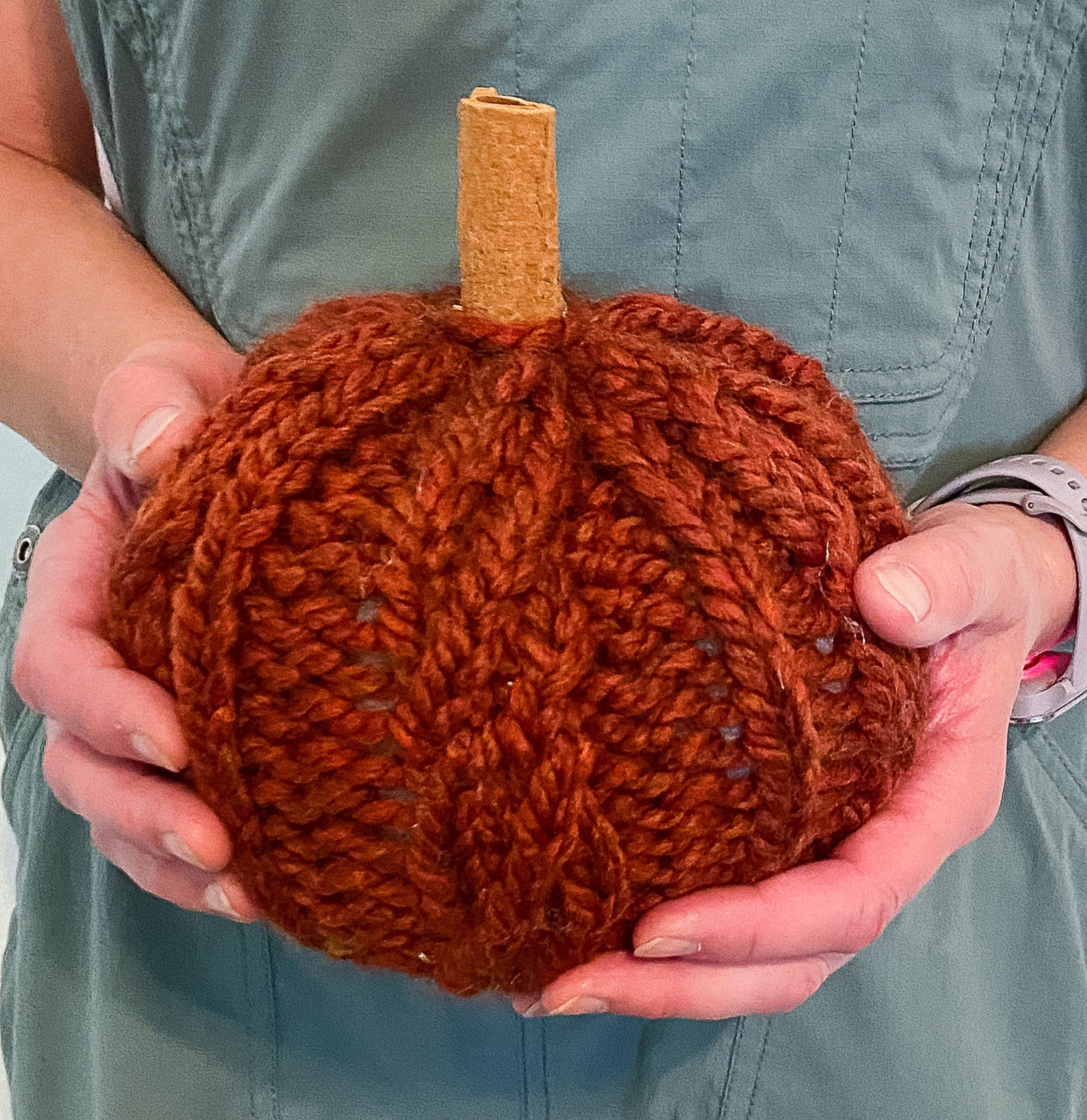 Knit pumpkin with cables | Pumpkin with mock cables for fall decor