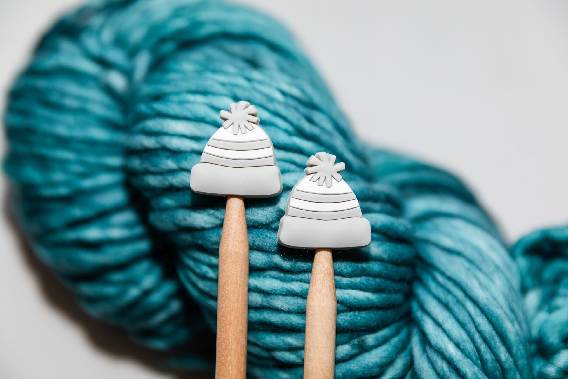 Winter stitch stoppers | Knitting notions gray and white beanie | gray winter hat stitch stopper